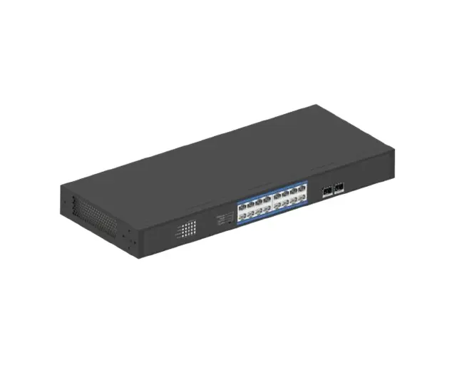 16 puertos RJ-45 10/100/1000Base-T PoE+ (AutoMDI/MDIX) 2 puertos SFP 1000Base-X Modo de funcionamiento: Predeterminado - QoS- CCTV- Vlan No administrable Potencia total 230W